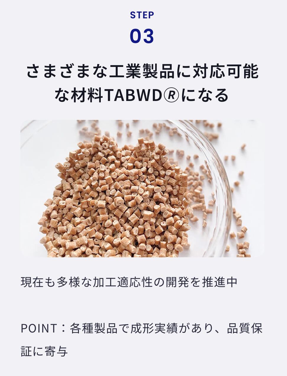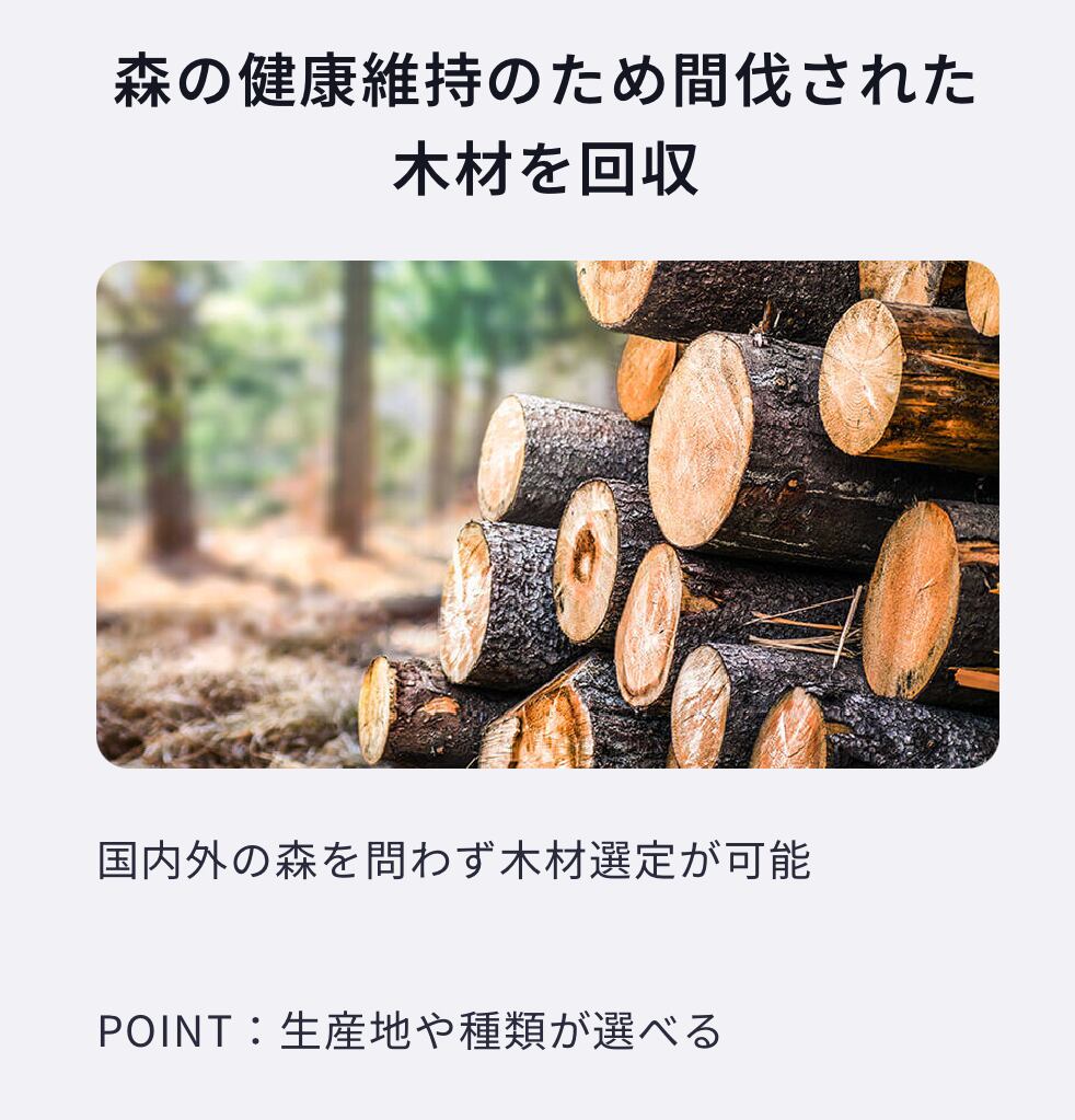 成長過程で吸収した二酸化炭素を蓄えたスギの間伐材を配合することでカーボンニュートラルに貢献。加工しやすく、繰り返し使用することが可能なため、サーキュラ―エコノミ―の実現にも役立ちます。